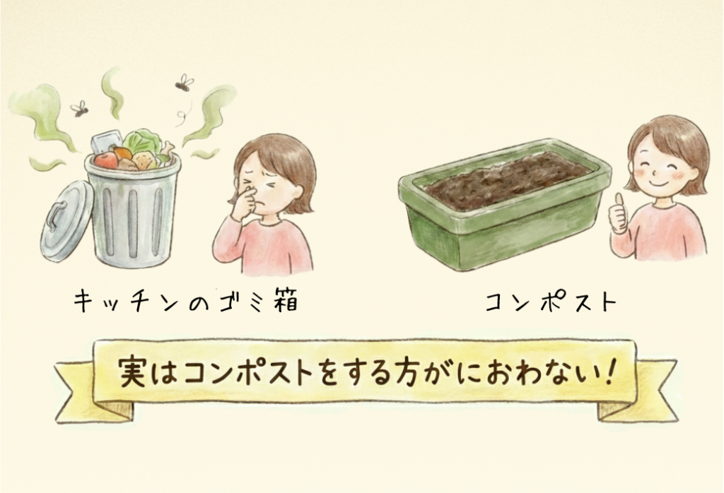 むしろ、コンポストを使わずに生ごみをキッチンのごみ箱に溜めている方が、においが気になることもあります。