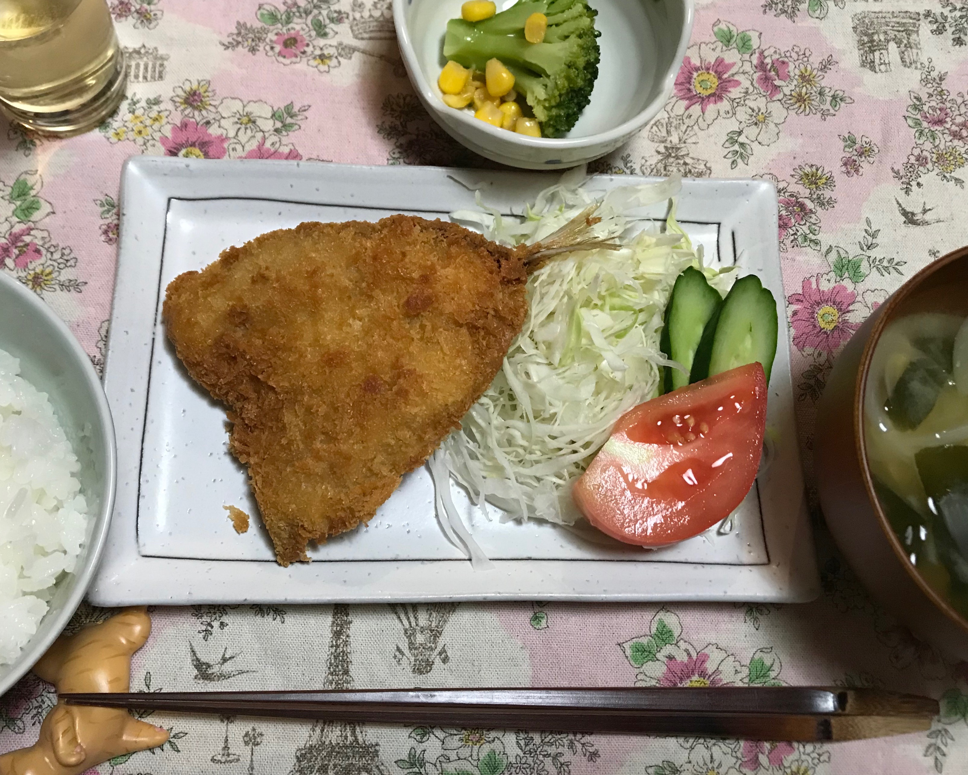 肉厚のあじフライ。2枚ペロリといく子も。