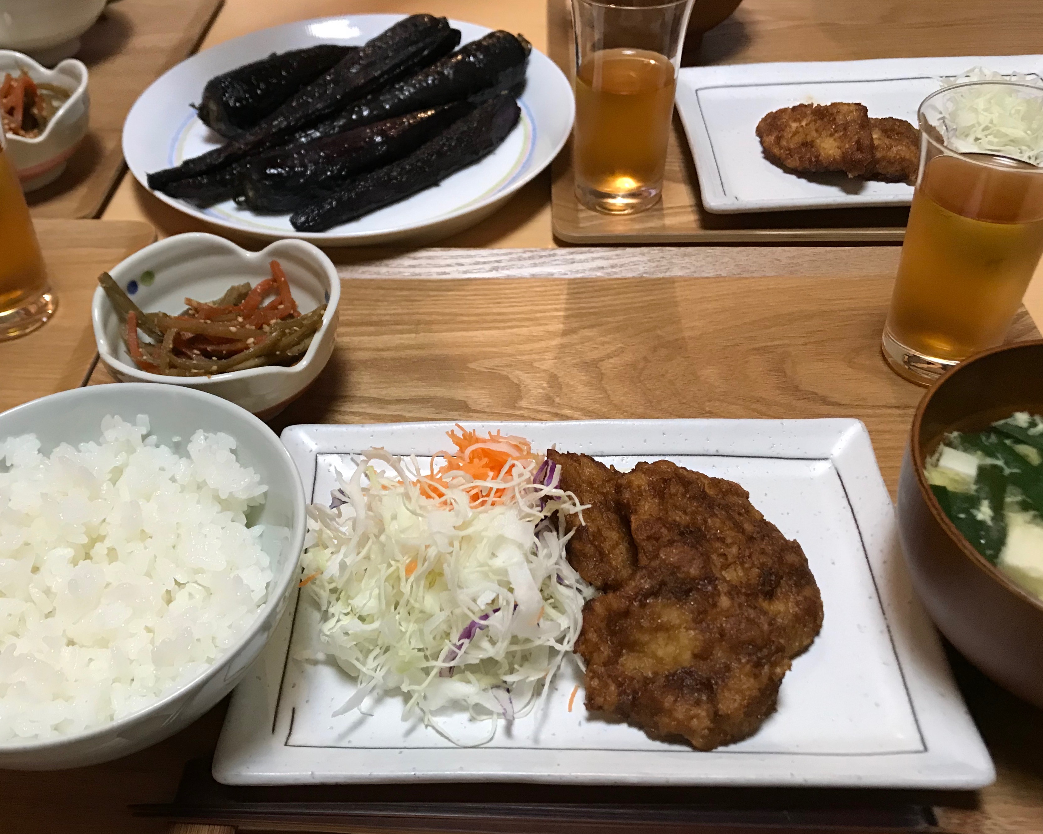 ソーストンカツ。奥の紫色の物体は「デザートにんじん」のロースト(サツマイモの味でした)。